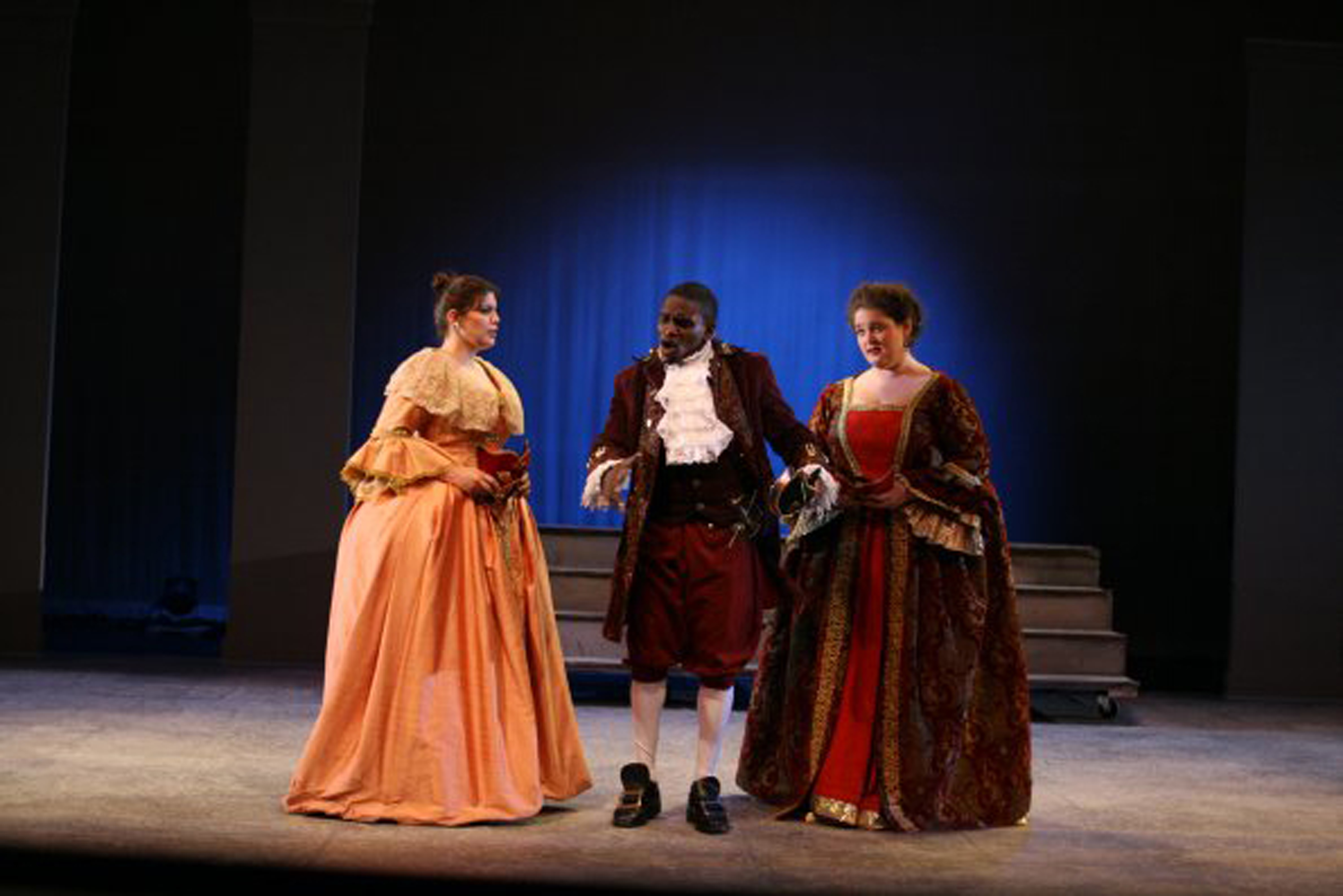 Let’s here it for innovation. It’s more than a trend for classical works to be re-imagined with a modern twist. This keeps material fresh and relevant. Sometimes however, there are pieces that are meant to be savored just as they are. Mozart’s Don Giovanni is one of them. The Bronx Opera has given us a gift: a production in lavish period costumes, striking scenery, and a full orchestra and chorus. Sitting in the steeply-racked Lovinger Theater one can easily transport themselves back to the time when Wolfgang himself conducted. It’s plot – if modernized would be too dark with too many health concerns for today’s standards – tells of a lecherous rouge and his mercenary servant and their exploit toying with the fairer sex. At the onset, we see that this amoral pair is not afraid to even kill for their pleasure. Setting in motion a hunt for these two upper class swine.