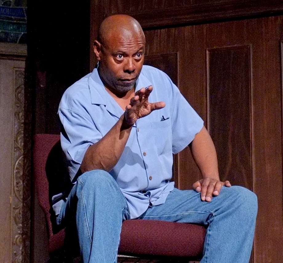 Glynn Borders is a fine writer and charismatic performer. He has a good voice, and projects at an appropriate level for the Davenport Theatre Black Box. He has expressive eyes that are a window to his pain, when he lets us see it, and at times his stare is intense. Comic moments and characterizations are peppered throughout the story that Mr. Borders weaves for the audience, who laughed easily several times.