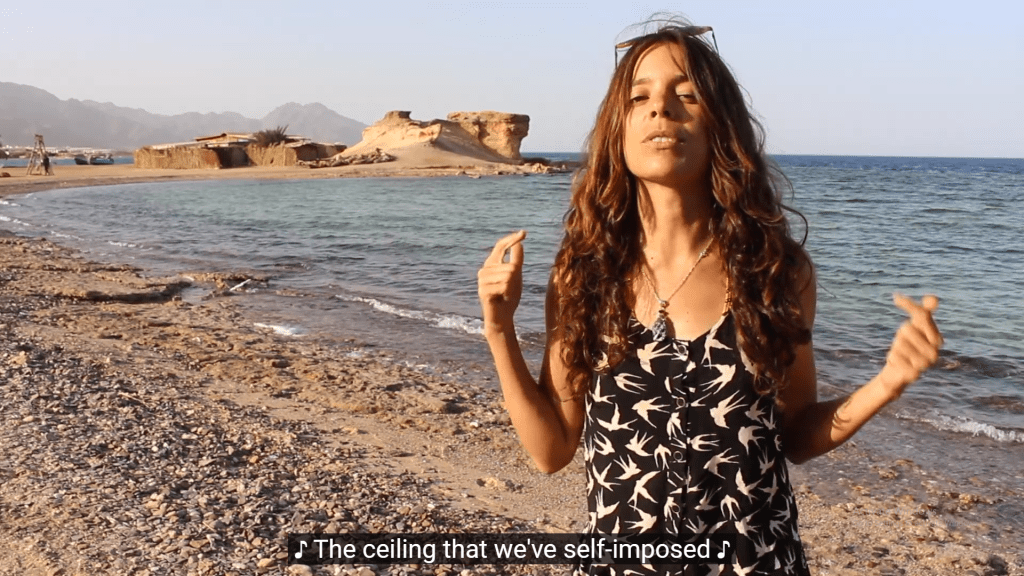 It’s a very impactful video about the ugliness of war and the need for and logic of peace. This video was shot in Israel, Palestine and Egypt. The locations are stunning. The video begins with happy children playing outdoors. We suddenly hear a few seconds of an air raid siren and almost immediately after that, some upbeat Middle Eastern music begins to play. We then see Ms. Shalom as she dazzles us with her spoken word creation about peace. Ms. Shalom enlisted a vast amount of individuals, young and old to share in this universal message of peace by lip syncing her words. In her own words, “The mosaic of individuals featured here are sovereign voices expressing a unified intention.” This was a beautiful and inspiring touch. All the individuals gave an emotional performance full of expression only second to Ms. Shalom’s artistry.