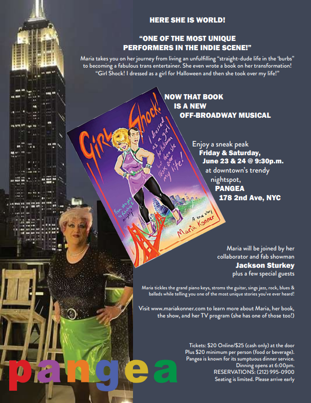 This concludes our whopping three-part interview with Maria Konner. We thank her for the time she took to provide us with such wonderful and comprehensive answers. Read “Girl Shock” then see the musical when it comes out. Catch one of Maria’s live shows and you’ll be oh so entertained. We know a girl named Maria and we like her a lot. Get to know her. You’ll be happy you did.