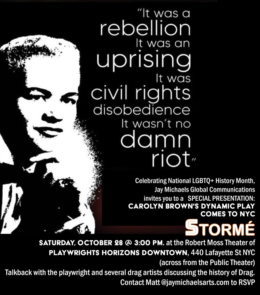 The play depicts these events in a way that begins harrowing but ends in victory, as Stormé seizes the moment and emerges a hero and an activist for the marginalized and oppressed.
