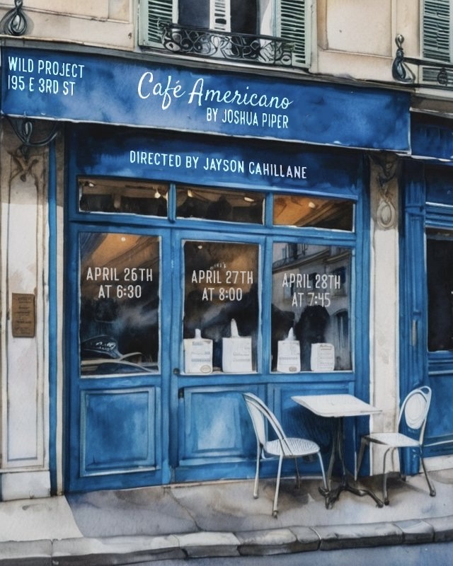 Paris is the setting for Joshua Piper’s romantic dramedy, Café Americano, a FEATURED EVENT of the 2024 Fresh Fruit Festival MAINSTAGE New Works Festival. Limited Run: April 26 @ 6:30p; April 27 @ 8p; and April 28 @ 7:45p the WILD PROJECT, 195 E 3rd St, New York City (All seats: $23 – Single Events or Build Your Own Schedule of Shows – Ticket Available HERE – Contact info@jaymichaelsarts.com for further details)